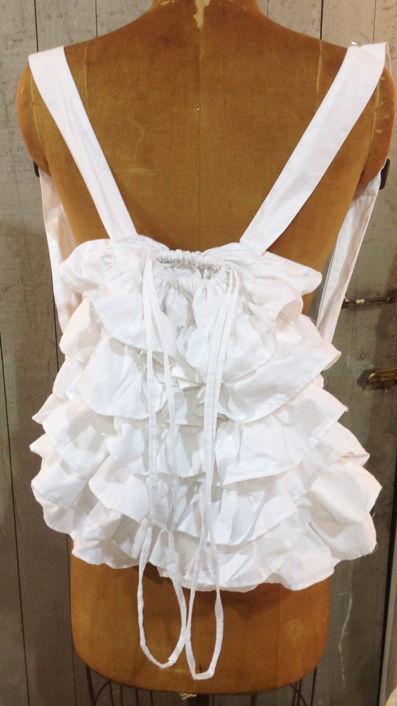 Loading... Please wait...White Ruffle Cinch Pack - 100% cotton linen. Measures 12" wide by 16" high
